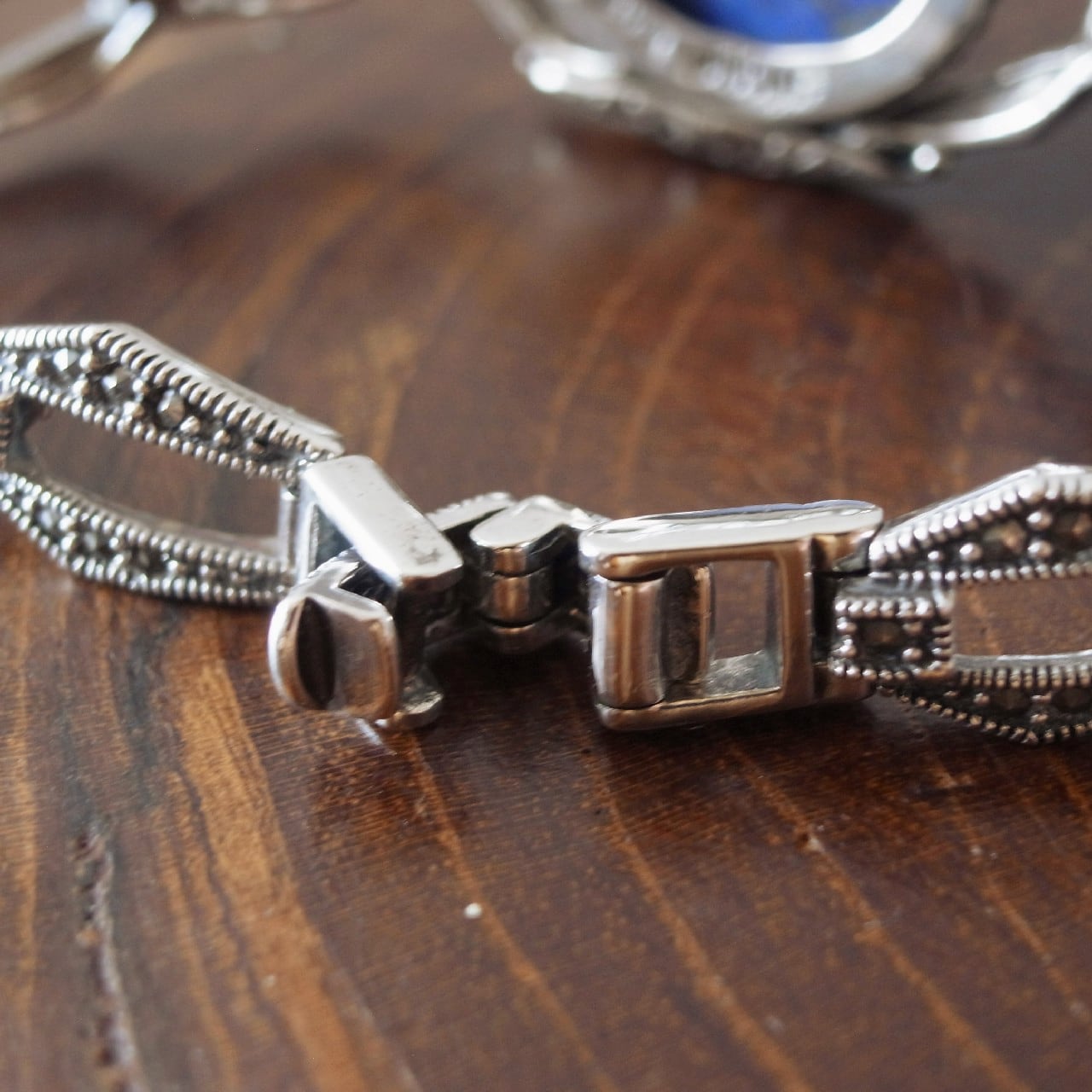 銀製品は空気中の硫黄物質などにより黒ずんできますが、市販の銀磨きクロスでお手入れして頂くと輝きがよみがえります。その際、石を避けて優しく磨いていただくと石へのダメージや破損防止になり長くご愛用いただけると思います。天然石は薬品・研磨剤・日光などからダメージを受けやすいものです。注意して大切に保管してください。液体クリーナーでのお手入れはお避け下さい