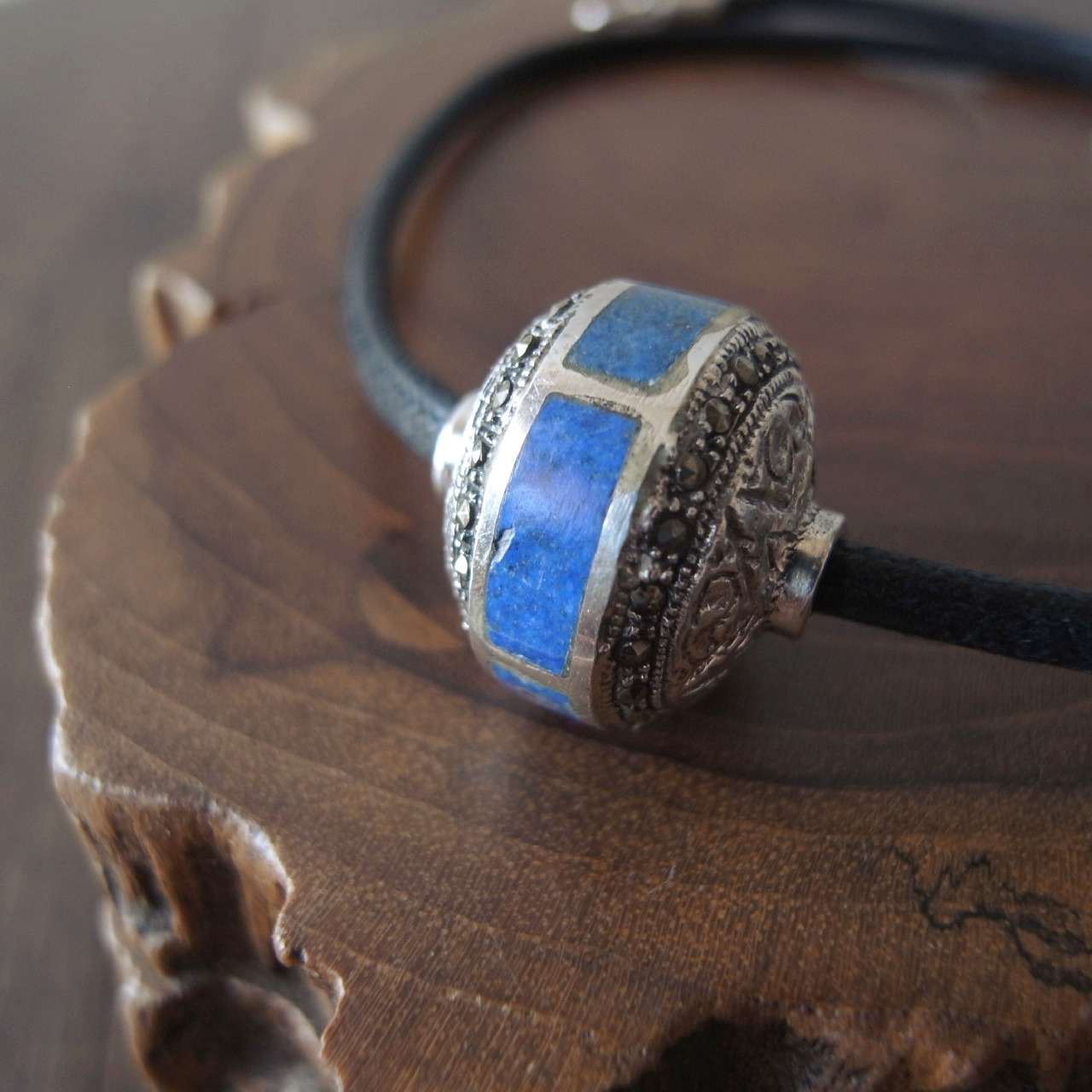 ラピスラズリとマーカサイト付きビーズ【ネックレス】