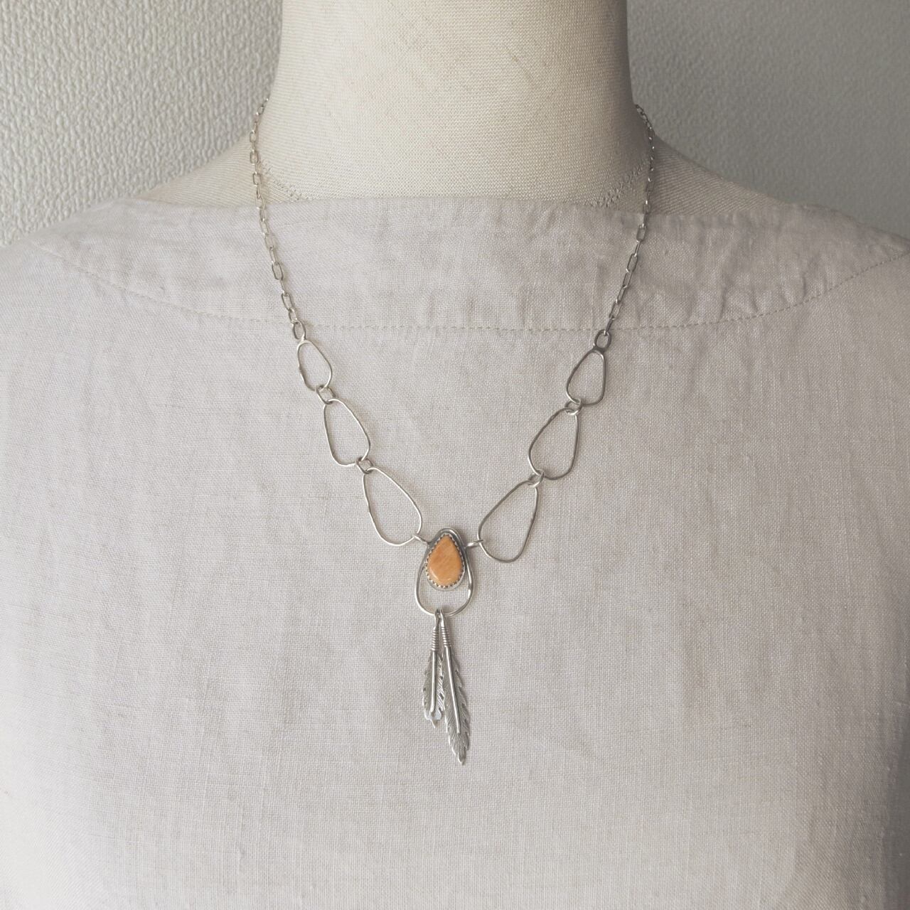 スパイニーオイスターのフェザーネックレス
