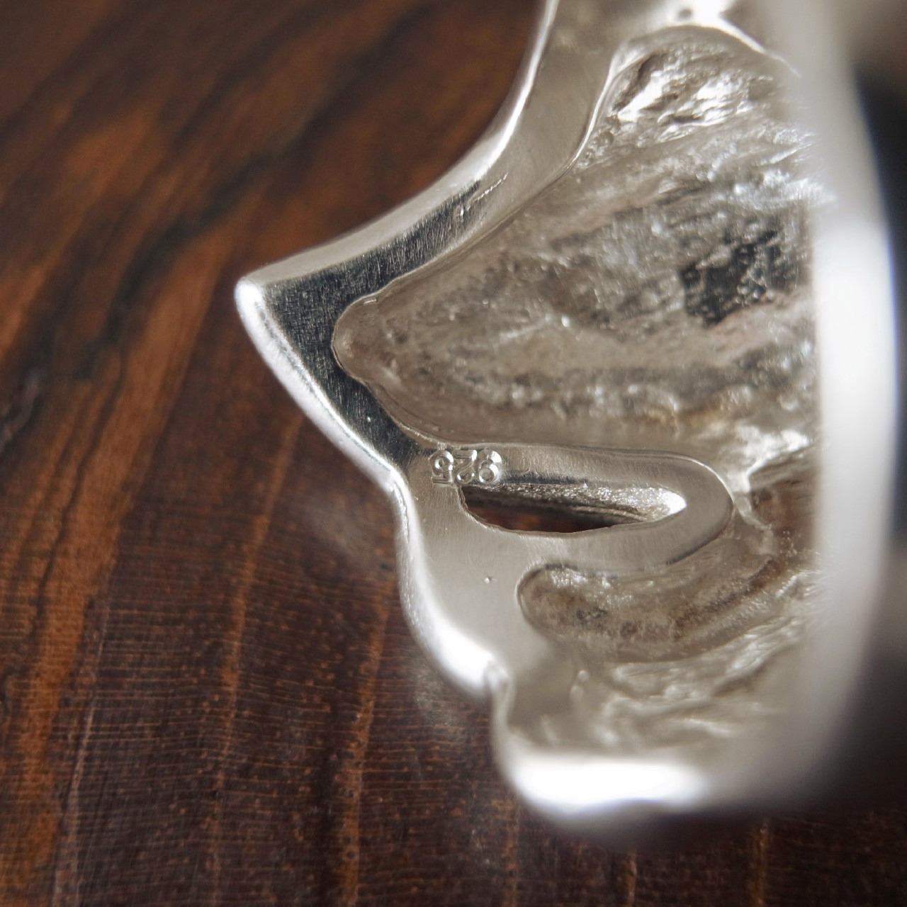 銀製品は空気中の硫黄物質などにより黒ずんできますが、市販の銀磨きクロスでお手入れして頂くと輝きがよみがえります。その際、石を避けて優しく磨いていただくと石へのダメージや破損防止になり長くご愛用いただけると思います。天然石は薬品・研磨剤・日光などからダメージを受けやすいものです。注意して大切に保管してください。液体クリーナーでのお手入れはお避け下さい