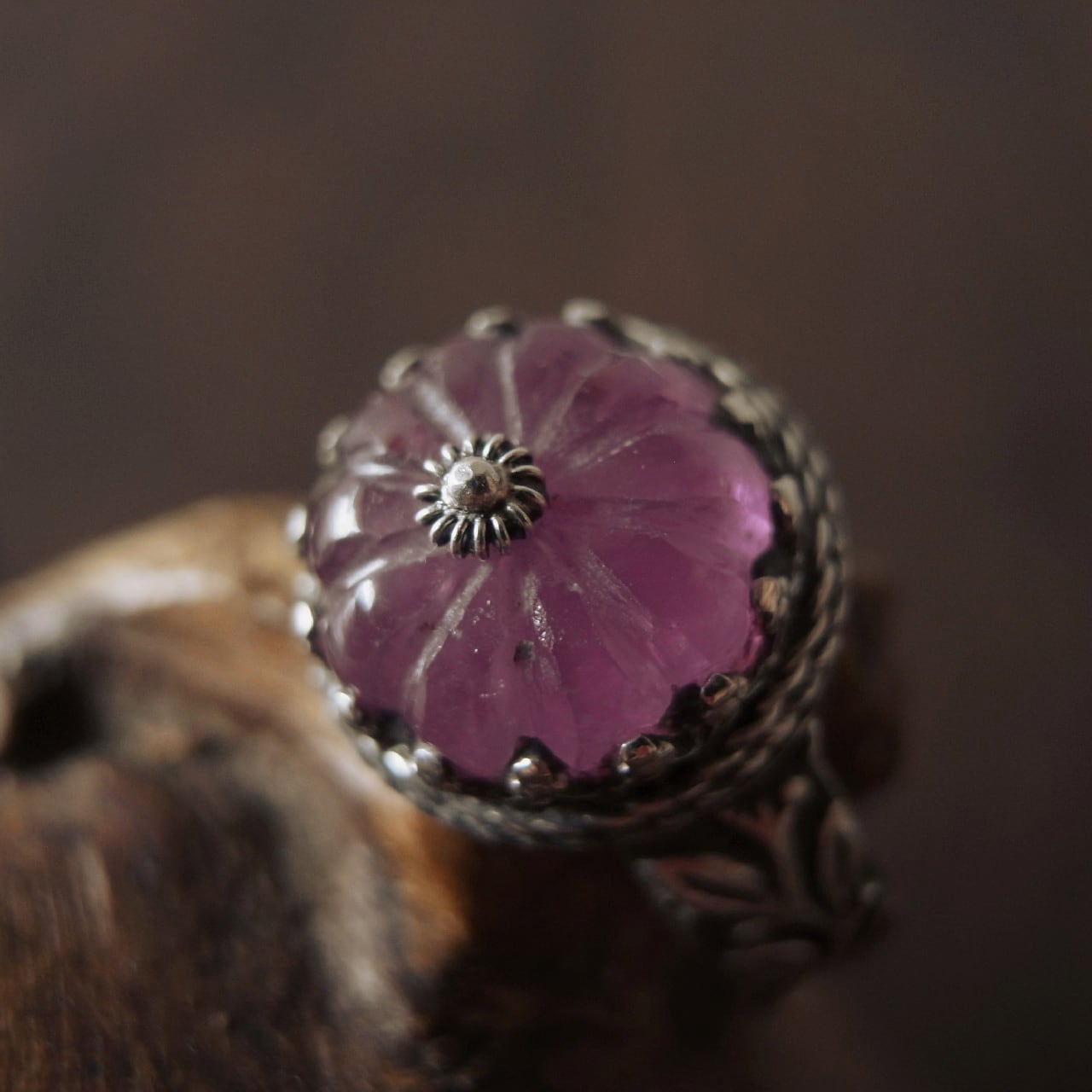 銀製品は空気中の硫黄物質などにより黒ずんできますが、市販の銀磨きクロスでお手入れして頂くと輝きがよみがえります。その際、石を避けて優しく磨いていただくと石へのダメージや破損防止になり長くご愛用いただけると思います。天然石は薬品・研磨剤・日光などからダメージを受けやすいものです。注意して大切に保管してください。液体クリーナーでのお手入れはお避け下さい