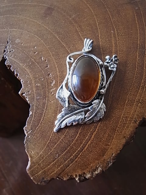 草花と琥珀のペンダントトップ