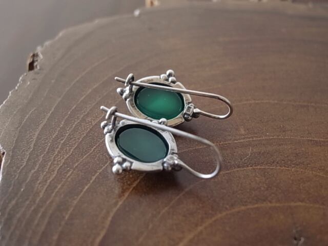 銀製品は空気中の硫黄物質などにより黒ずんできますが、市販の銀磨きクロスでお手入れして頂くと輝きがよみがえります。その際、石を避けて優しく磨いていただくと石へのダメージや破損防止になり長くご愛用いただけると思います。天然石は薬品・研磨剤・日光などからダメージを受けやすいものです。注意して大切に保管してください。液体クリーナーでのお手入れはお避け下さい