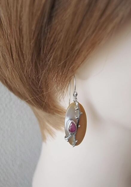 ルビーと貝のピアス