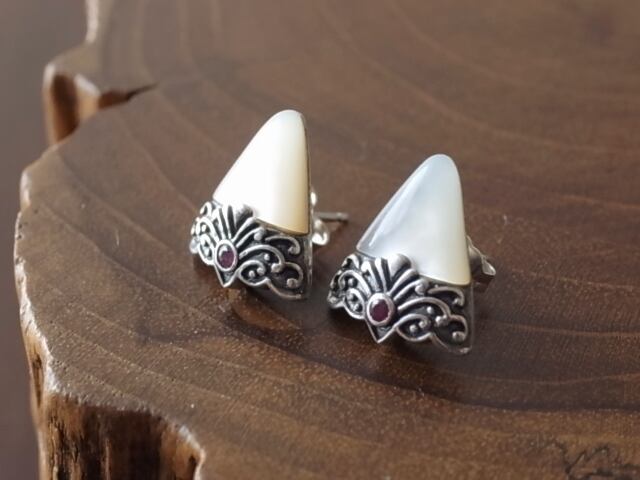 銀製品は空気中の硫黄物質などにより黒ずんできますが、市販の銀磨きクロスでお手入れして頂くと輝きがよみがえります。その際、石を避けて優しく磨いていただくと石へのダメージや破損防止になり長くご愛用いただけると思います。天然石は薬品・研磨剤・日光などからダメージを受けやすいものです。注意して大切に保管してください。液体クリーナーでのお手入れはお避け下さい