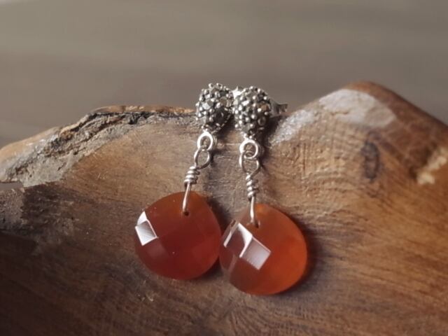 カーネリアンとマーカサイトのピアス