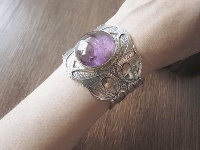 銀製品は空気中の硫黄物質などにより黒ずんできますが、市販の銀磨きクロスでお手入れして頂くと輝きがよみがえります。その際、石を避けて優しく磨いていただくと石へのダメージや破損防止になり長くご愛用いただけると思います。天然石は薬品・研磨剤・日光などからダメージを受けやすいものです。注意して大切に保管してください。液体クリーナーでのお手入れはお避け下さい
