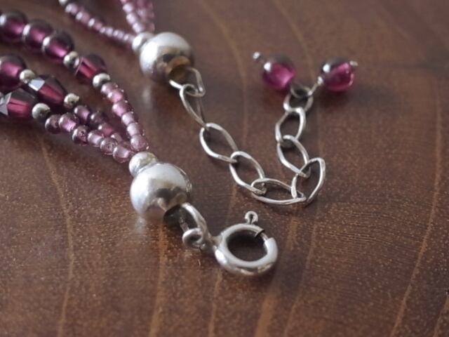 銀製品は空気中の硫黄物質などにより黒ずんできますが、市販の銀磨きクロスでお手入れして頂くと輝きがよみがえります。その際、石を避けて優しく磨いていただくと石へのダメージや破損防止になり長くご愛用いただけると思います。天然石は薬品・研磨剤・日光などからダメージを受けやすいものです。注意して大切に保管してください。液体クリーナーでのお手入れはお避け下さい