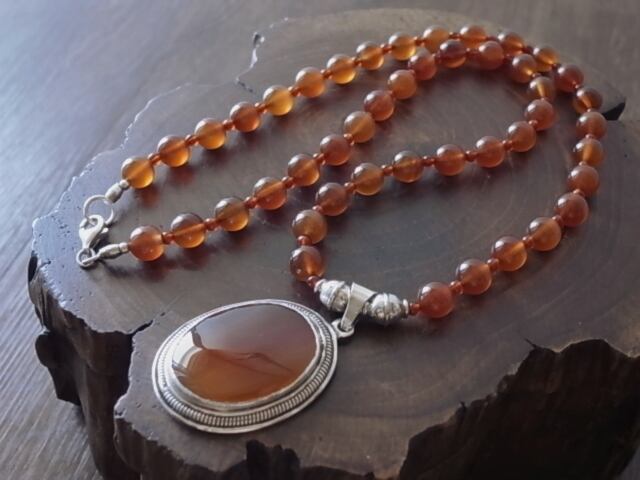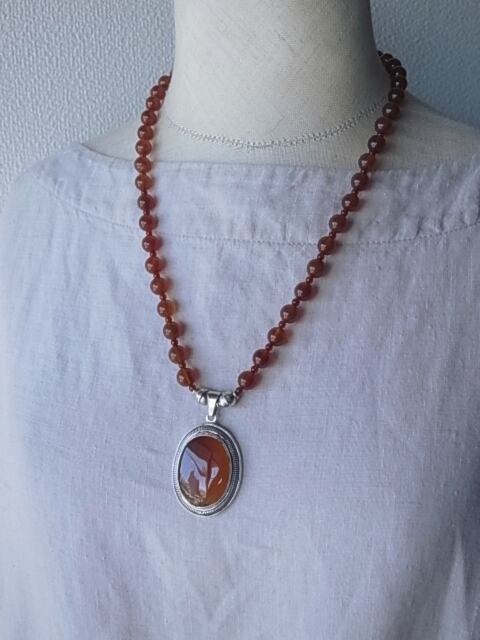 銀製品は空気中の硫黄物質などにより黒ずんできますが、市販の銀磨きクロスでお手入れして頂くと輝きがよみがえります。その際、石を避けて優しく磨いていただくと石へのダメージや破損防止になり長くご愛用いただけると思います。天然石は薬品・研磨剤・日光などからダメージを受けやすいものです。注意して大切に保管してください。液体クリーナーでのお手入れはお避け下さい