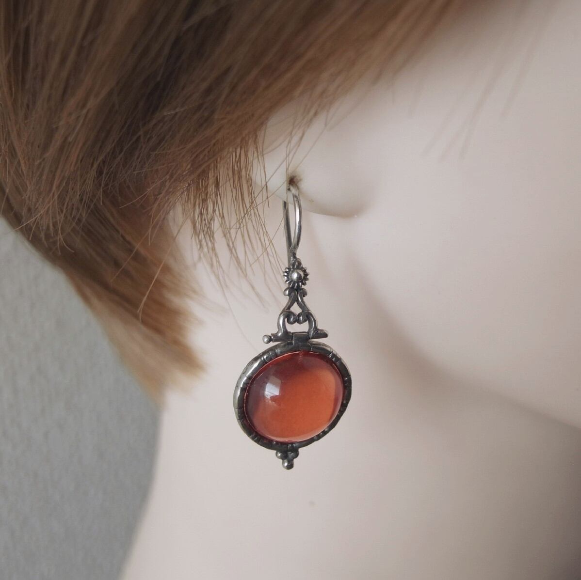赤い琥珀のピアス