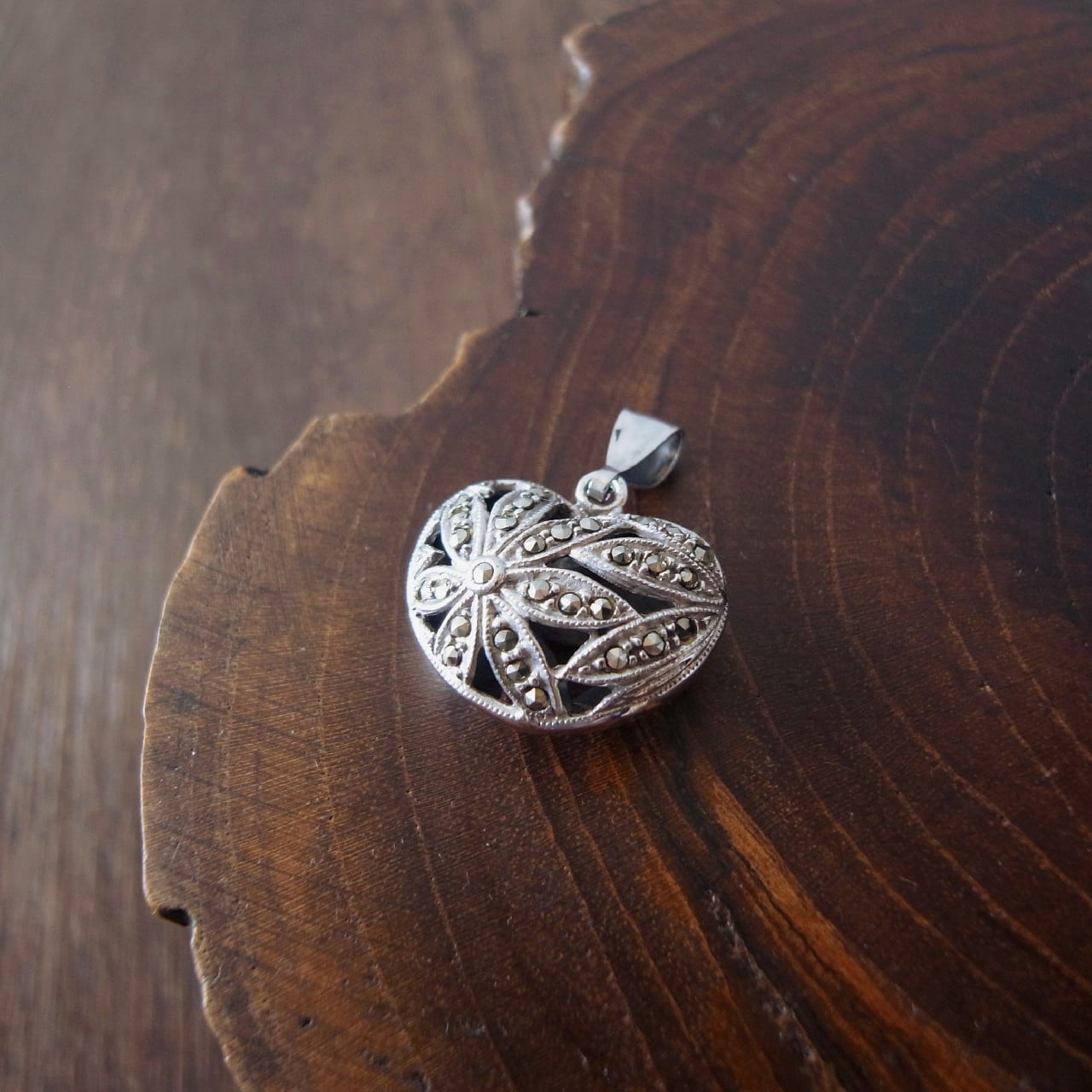 ふっくらハートのペンダントトップ・マーカサイト